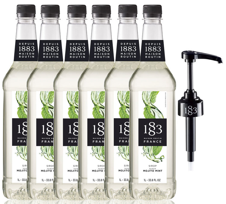 Questions et réponses de clients sur Lot de 6 Sirops pour professionnel Mojito Mint (Sans Alcool) - Bouteille Plastique - 6x1L + Pompe doseuse - 1883 ROUTIN