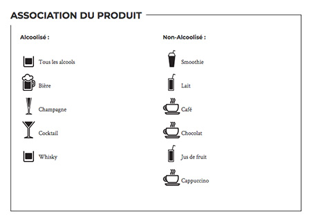 | Applications | Boissons à base de café, Boissons chocolatées, Eau, Sodas et Limonades, Milkshakes, Frappés, Cocktails, Desserts |