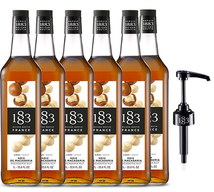 | Lot de 6 Sirops 1883 Routin Noix de Macadamia - Bouteille Plastique - 6x1L + Pompe doseuse | |