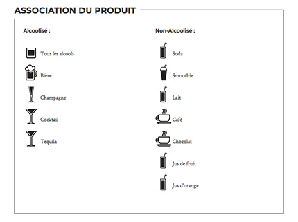 | Applications | Boissons à base de café, Boissons chocolatées, Eau, Sodas et Limonades, Milkshakes, Frappés, Cocktails |