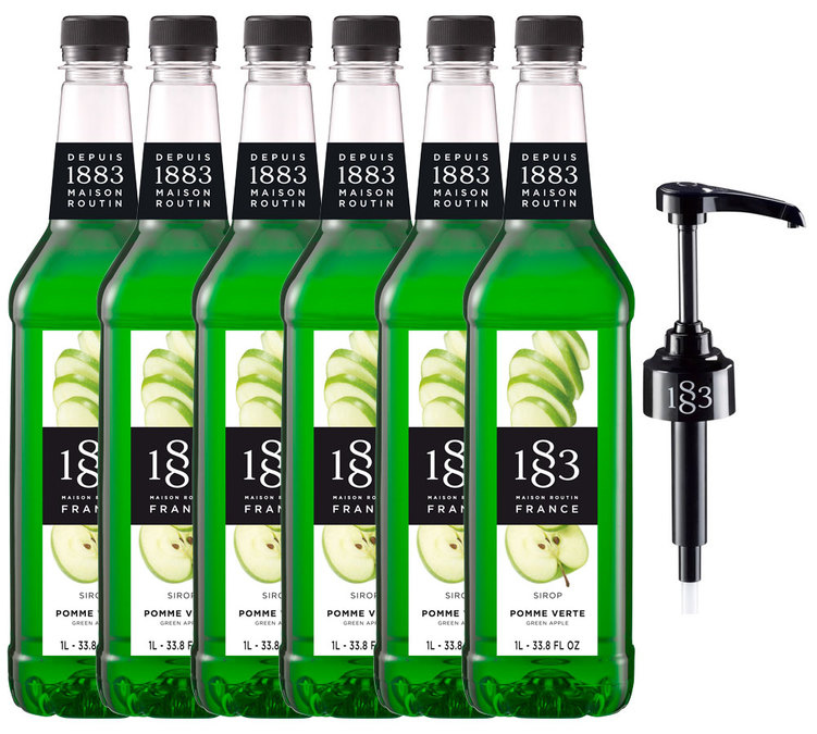 | Lot de 6 Sirops pour professionnel Pomme Verte - Bouteille Plastique - 6x1L + Pompe doseuse 1883 ROUTIN | |