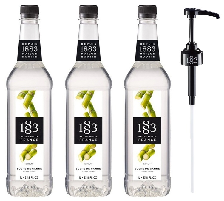 | Lot de 3 Sirops Sucre de Canne pour professionnel- Bouteille Plastique - 3x1L + Pompe doseuse 1883 ROUTIN | |