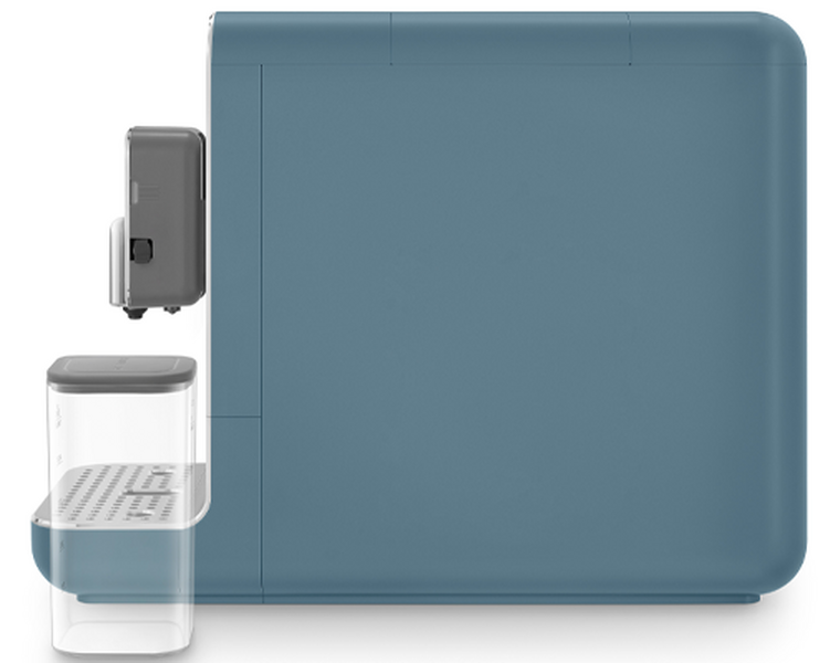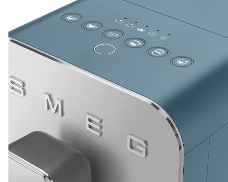 La SMEG BCC13SBMEU arbore un look moderne et épuré, avec un coloris Bleu Orage mat et des finitions métalliques élégantes. Conçue pour s’intégrer même dans les cuisines les plus petites, elle offre une vraie compacité sans faire l’impasse sur les fonctionnalités. Le panneau de commande en façade est intuitif et les éléments essentiels (réservoir d’eau, bac à grains, unité de percolation) sont facilement accessibles. Les matériaux mêlent plastiques renforcés, aluminium brossé et silicone pour un usage quotidien, pratique et durable.