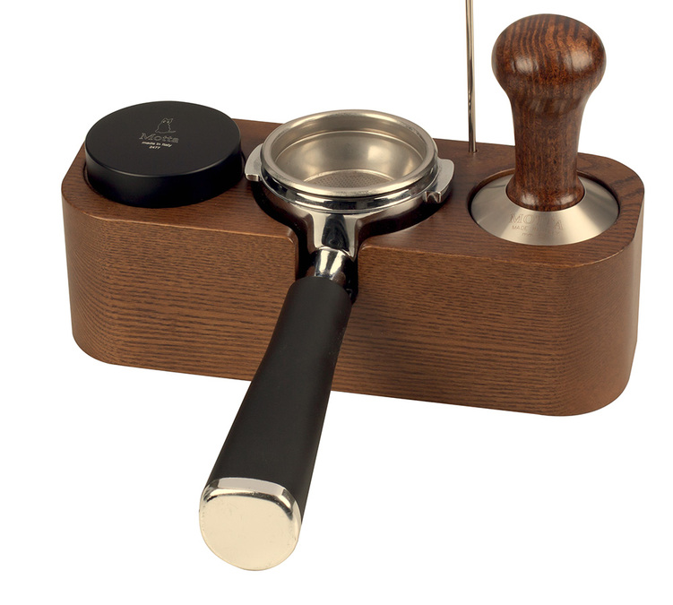 Elle vous permet de placer votre porte-filtre correctement, mais aussi d'accueillir un tamper et un répartiteur de mouture. Motta a même prévu une encoche pour tenir votre stylo Latte Art.