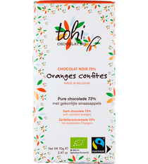 | Tablette Chocolat Noir 74% Cacao Oranges Amères Bio - 70 g - TOHI | |