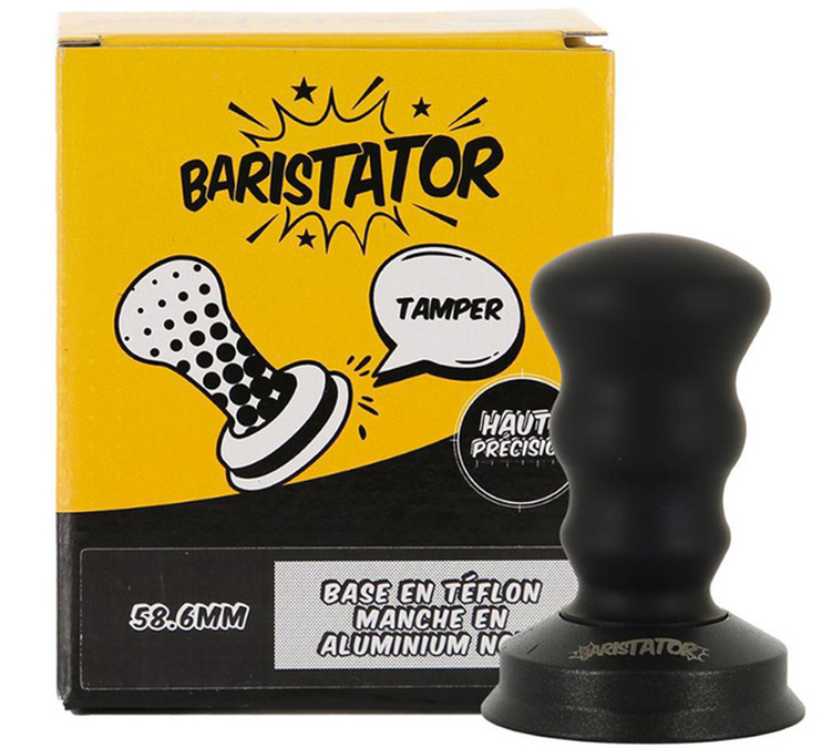 | Tamper café pour professionnels BARISTATOR 58,6 mm base antistatique et manche en aluminium noir | |