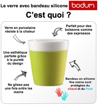 | Lot de 4 tasses Bistro en porcelaine avec bande silicone verte (17cl + 30cl) - Bodum | |