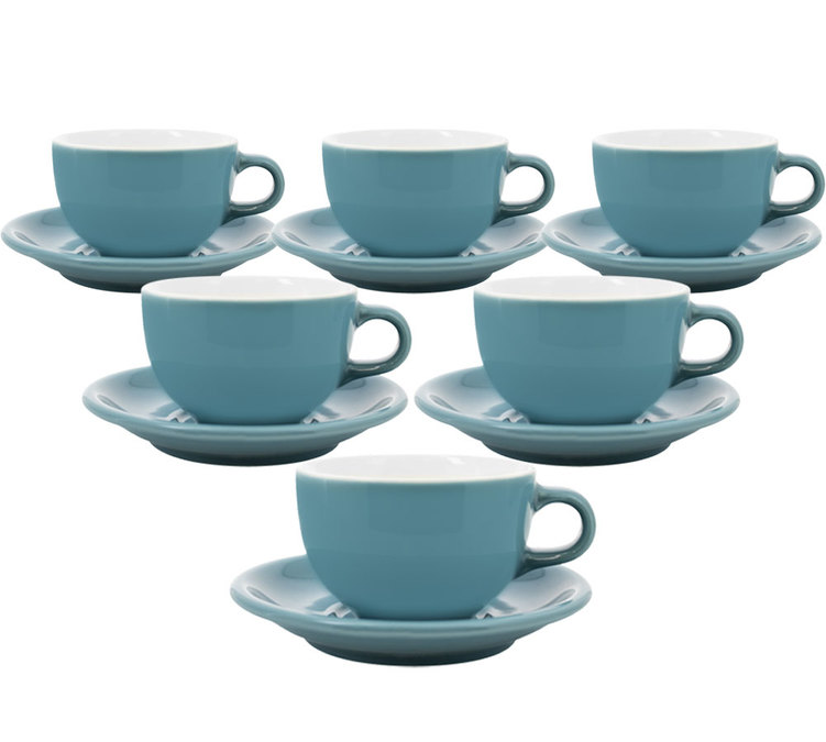 6 Tasses et sous tasses Latte Bowl Origami 19cl - Turquoise