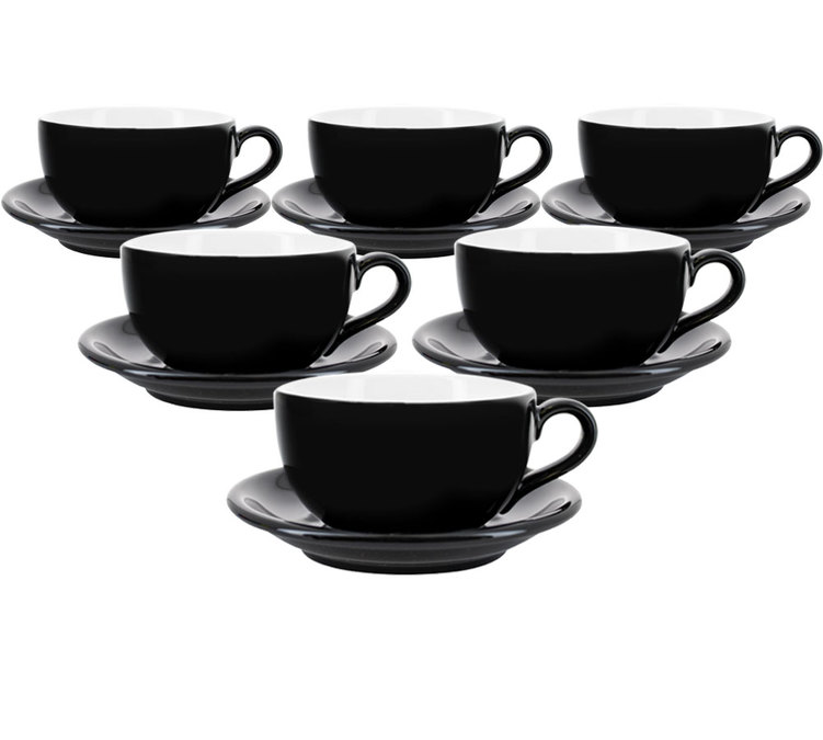 Tasses - ORIGAMI - tasses et sous tasses Latte Bowl noir 25cl x6