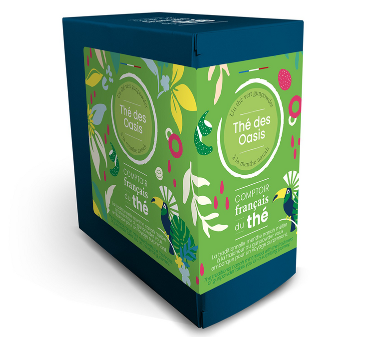 Ce thé vert des Oasis vous offrira en tasse un savoureux mélange où le thé vert délivrera ses notes végétales relevées par la puissance de la menthe Nanah. Un moment de fraîcheur intense et désaltérant. Comptoir Français du Thé a imaginé pour vous une gamme de thé aux saveurs gourmandes. Idéale en période estivale, ces thés vous séduiront par l'alliance de la fraîcheur et de la gourmandise, de quoi vous évader le temps d'une gorgée.