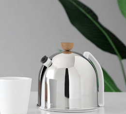 Le corps en porcelaine est recouvert d'une cloche ajustée en acier inoxydable doublée de feutrine, afin de maintenir votre boisson au chaud et de ne pas se bruler grâce au bouton en bois.