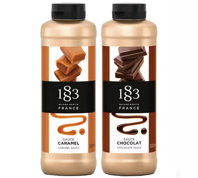 Avis client sur Lot de 2 toppings 500 ml - Caramel et chocolat noir - 1883 ROUTIN