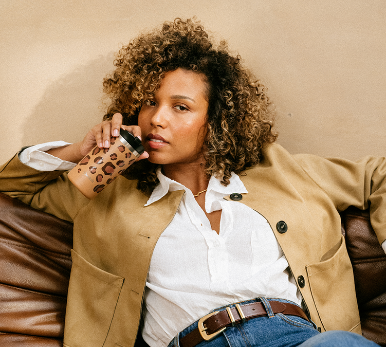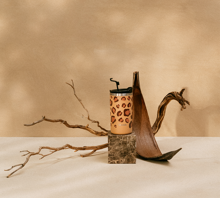 Vous cherchez un mug pour transporter facilement votre thé, votre café, ou votre boisson fraiche ? Ce travel mug isotherme 35 cl de Qwetch en motif léopard camel est fait pour vous.