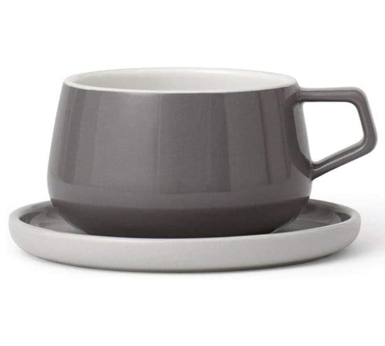 Le mug de Viva Scandinavia a un design épuré aux lignes simplifiées. Ce joli mug de couleur “gris storm” est composé de porcelaine de qualité supérieure et il est accompagné d'une sous-tasse.